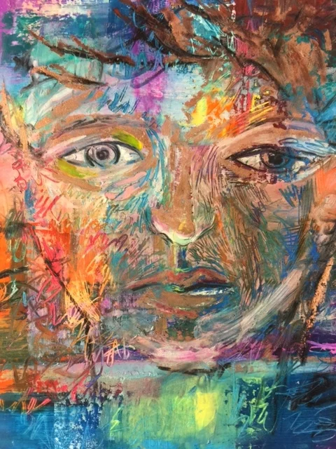 Both imagery and delivery of this acrylic painting are unsettling. How you interpret this work depends on your viewpoint.